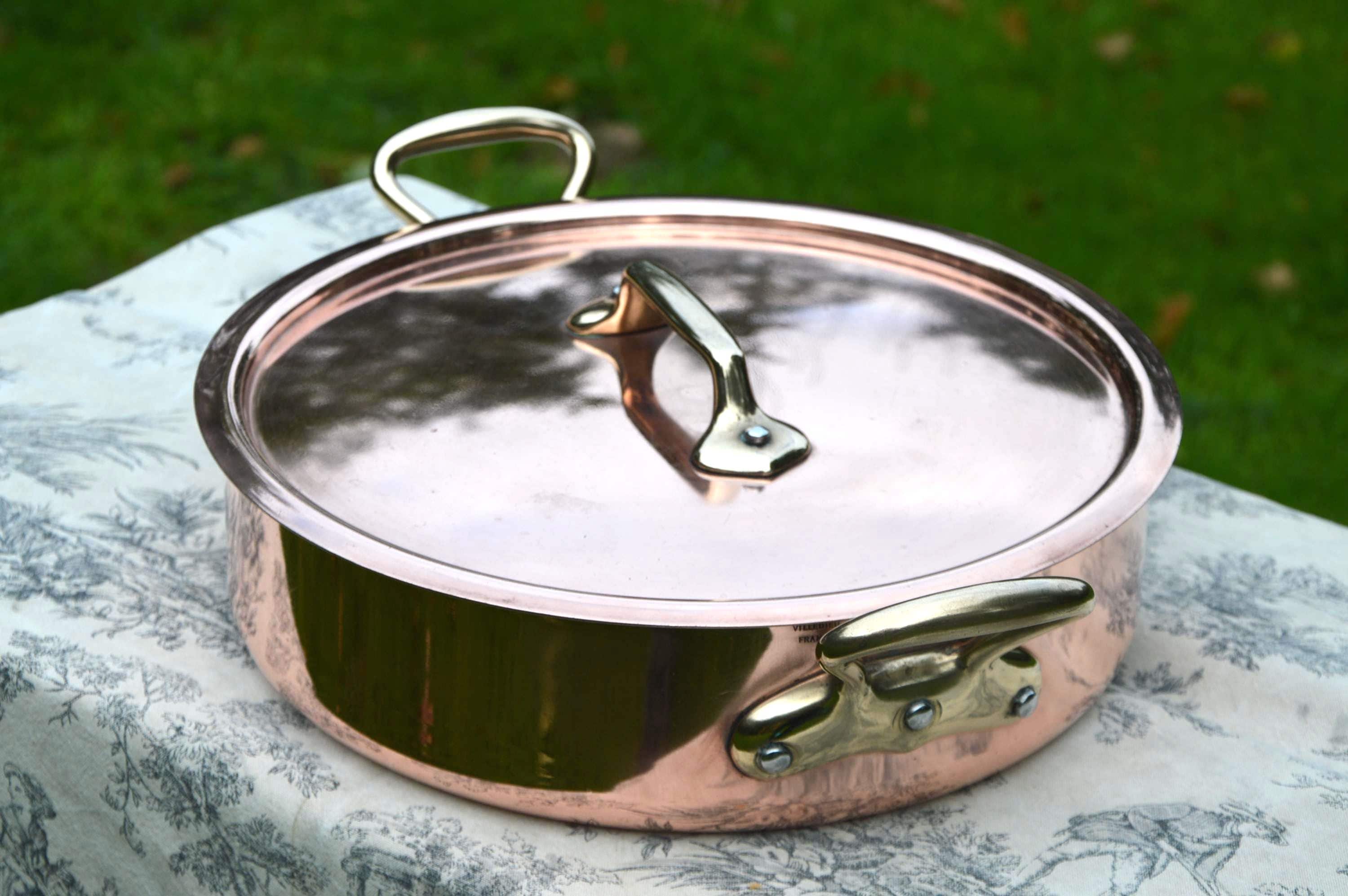 Rondeau French Vintage 3.5mm Copper Factory Nickel 28cm Rondeau Pot Faitout Good Size Saute Pan Villedieu France Stamped