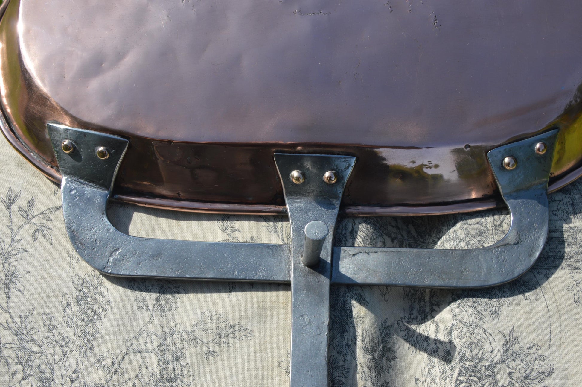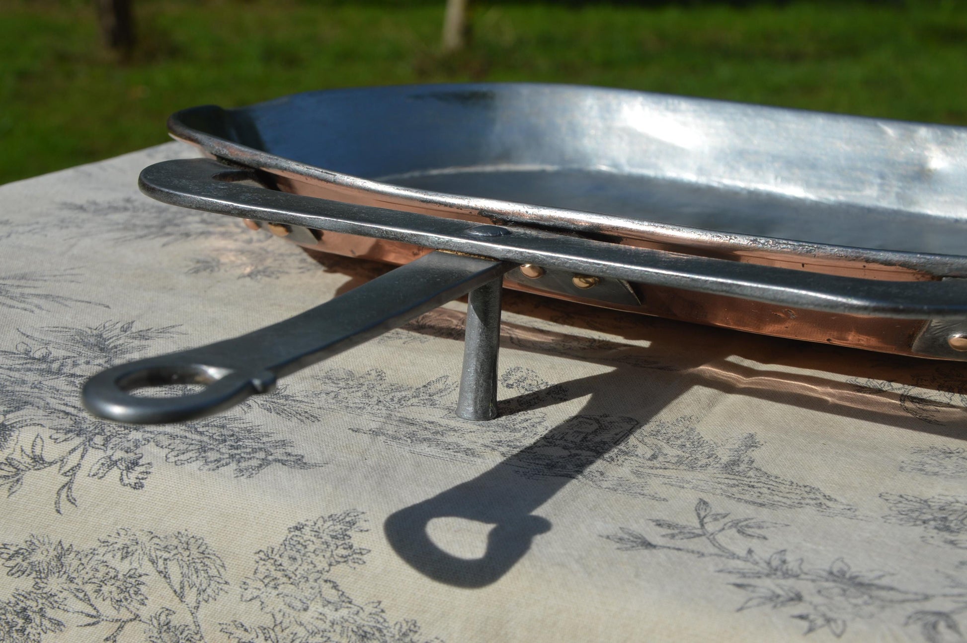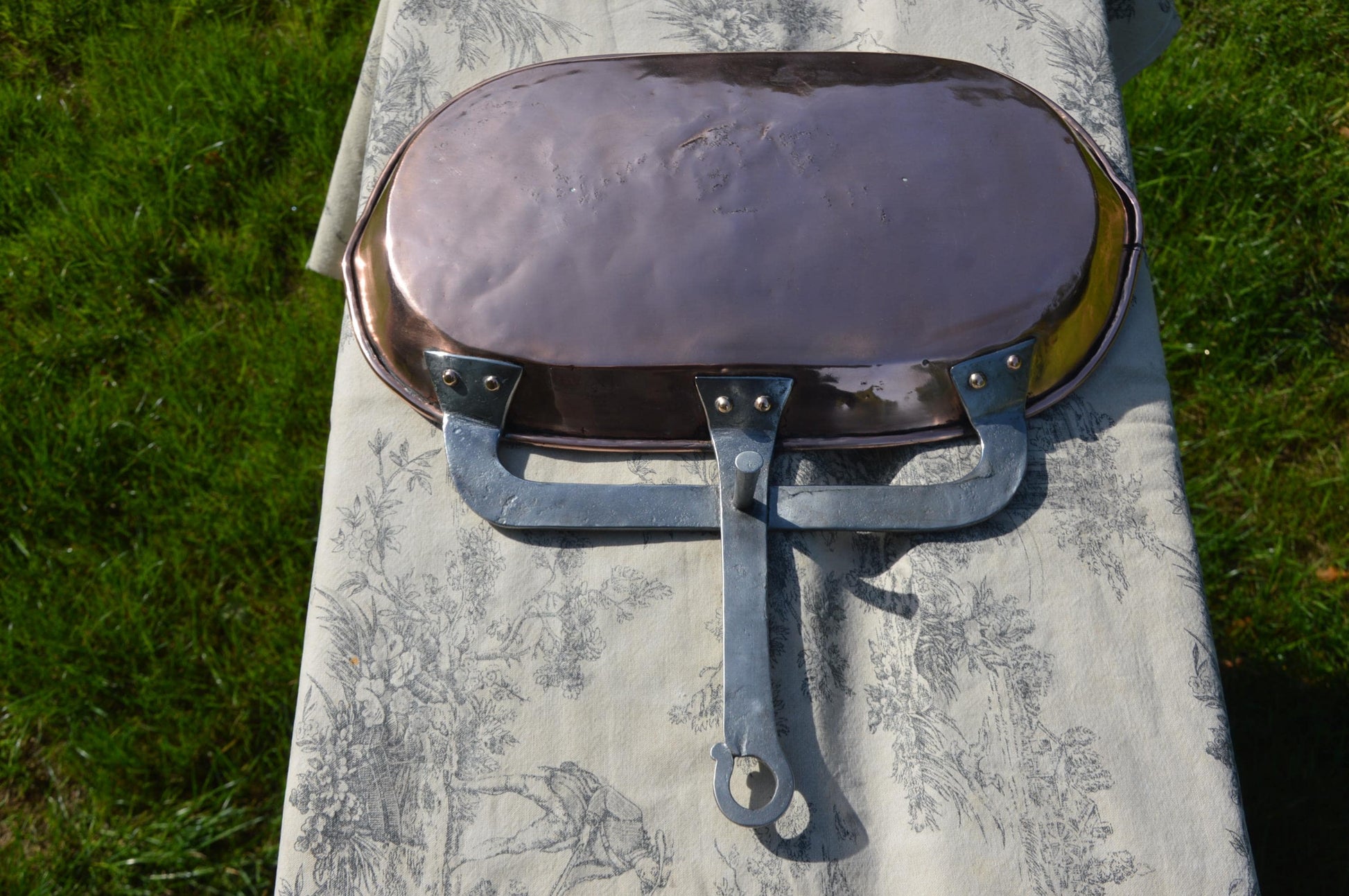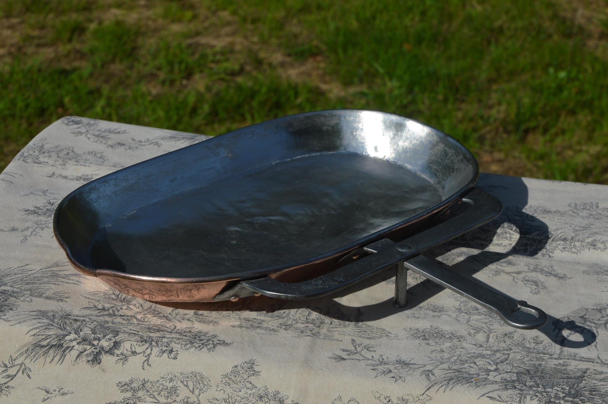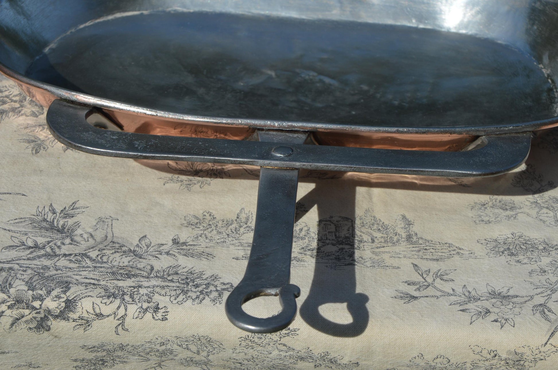 Antique Copper Lechefrite: Refurbished French Roasting Pan with Wrought Iron Handle