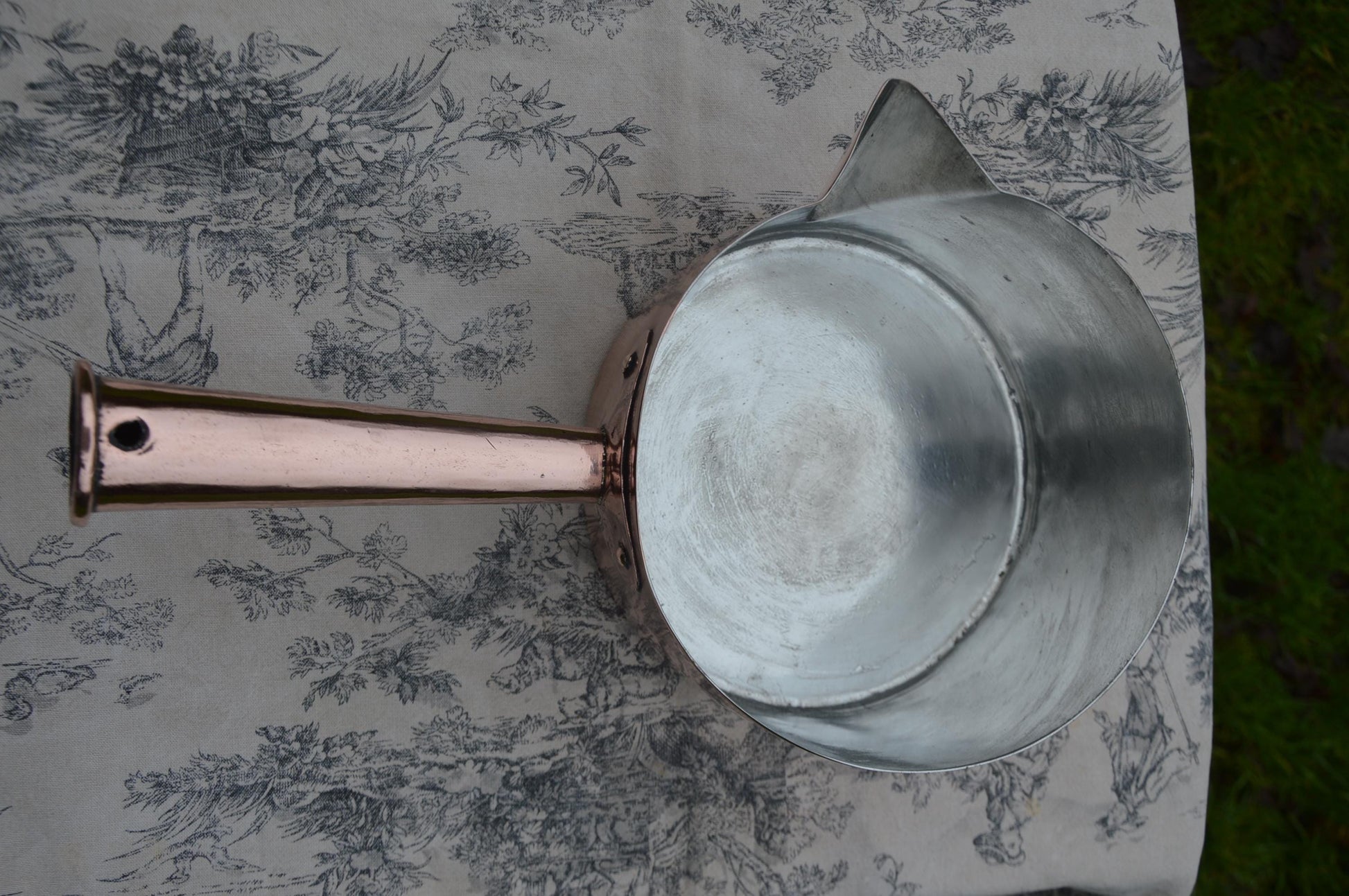 Antique Copper Sugar Pan: Tinned Chef Pâtissier Pan with Spout