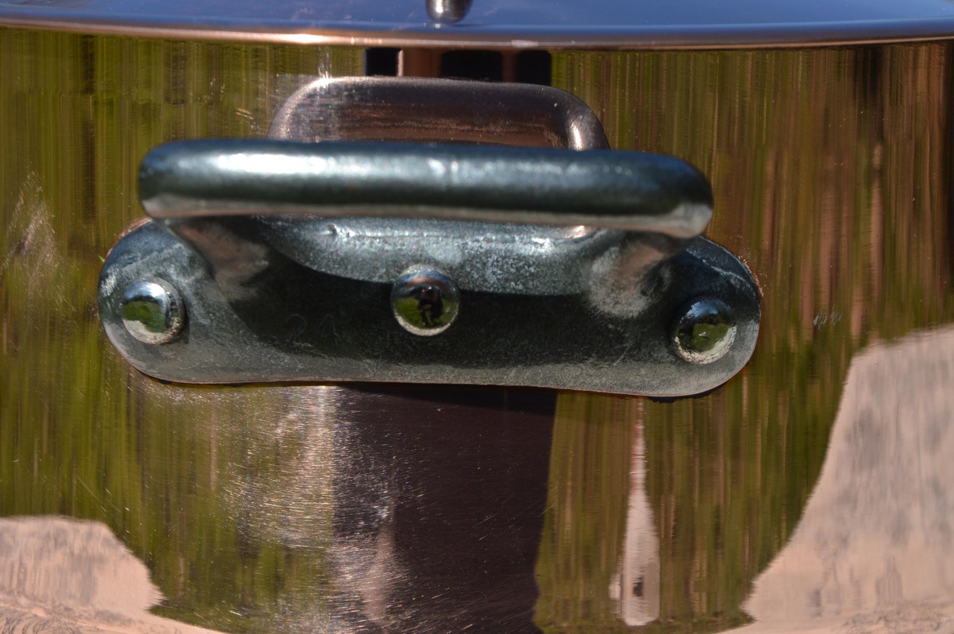 This has a good high top handle and is solid and dependable, it is an ideal size for a domestic stove and will hold it's own in a professional setting - the 2.9/3mm copper will work all day without complaint!