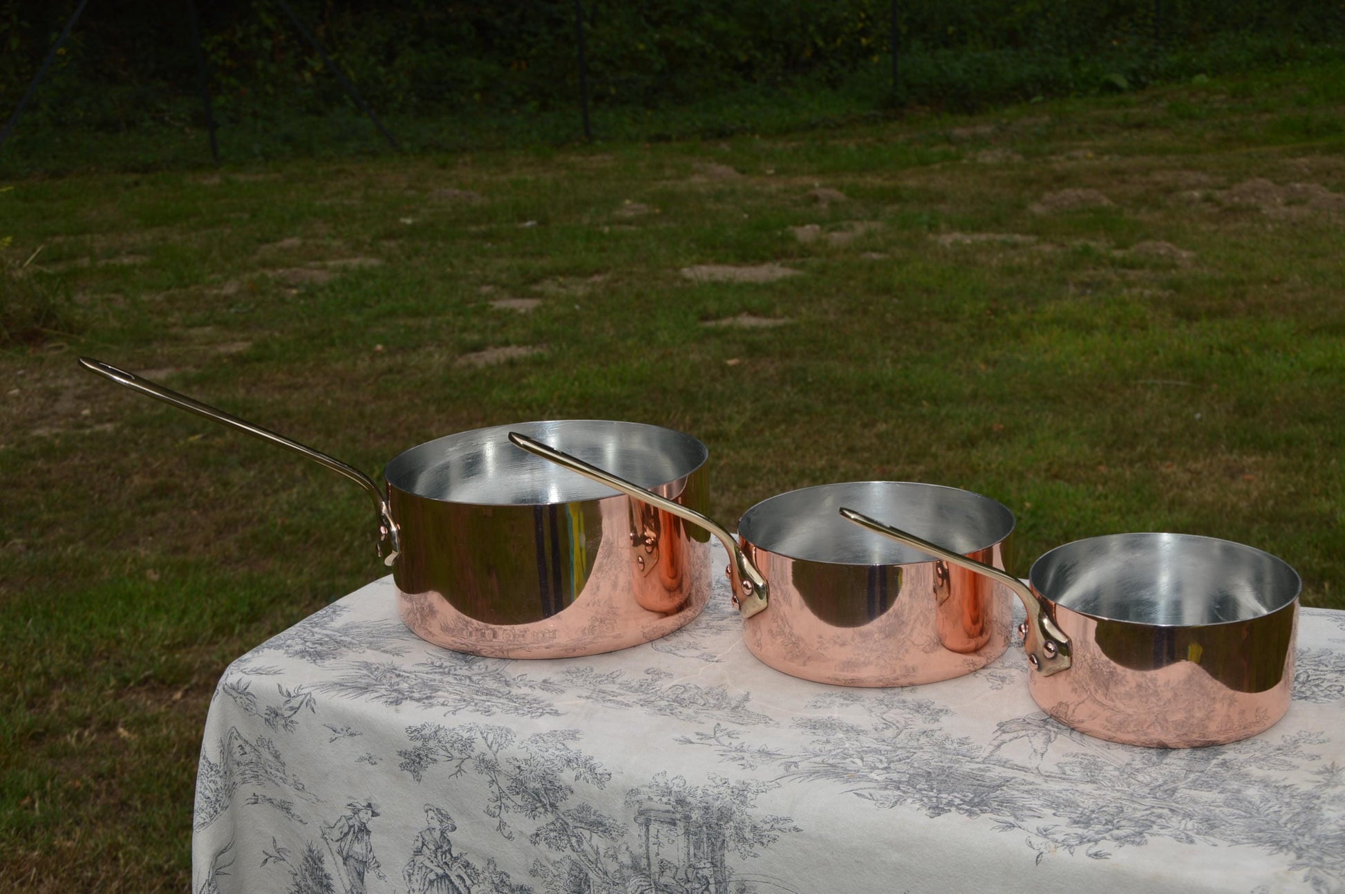 Vintage French Copper Pan Set: Villedieu, Bronze Handles, Made in France