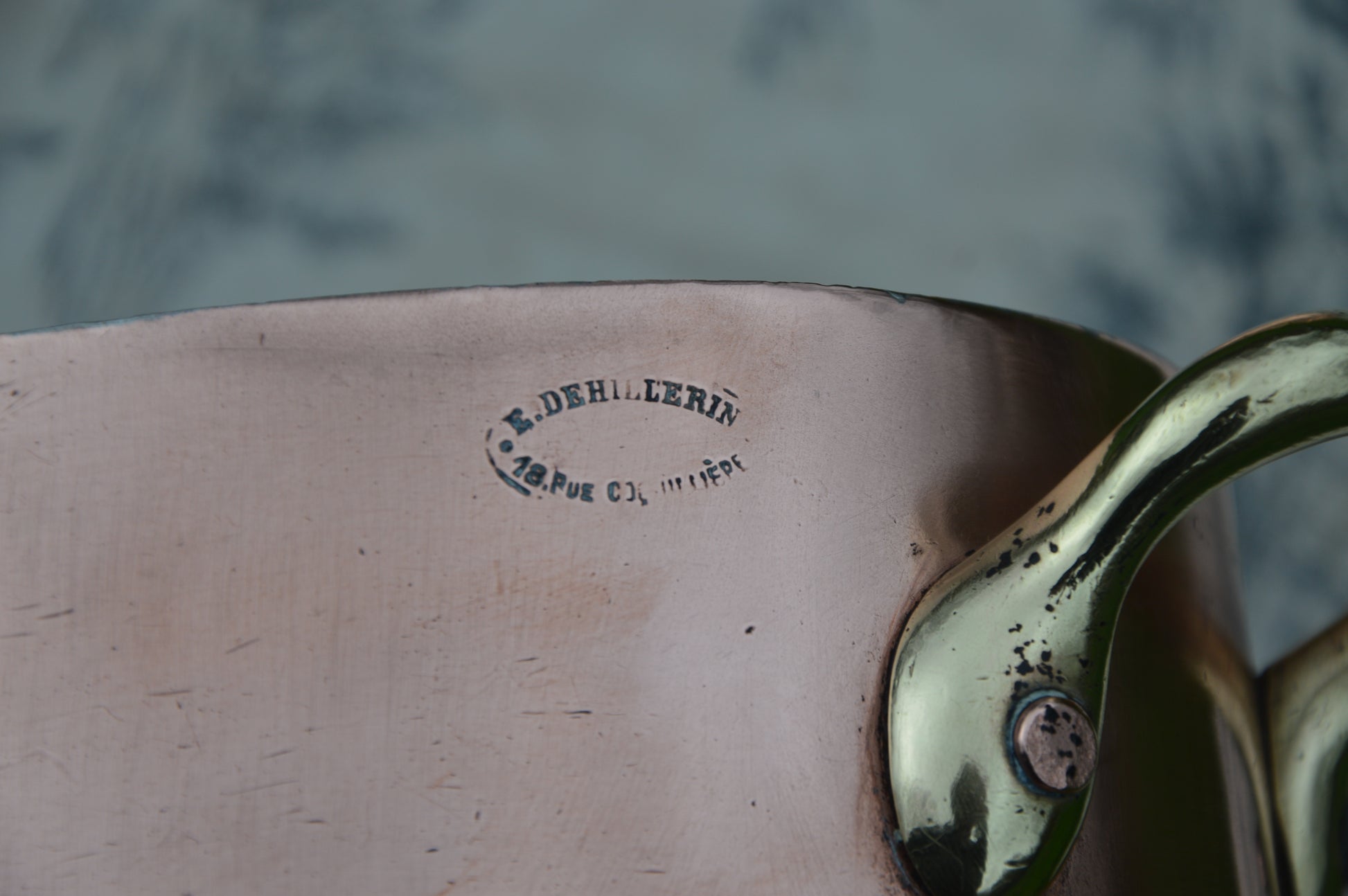 Antique E Dehillerin 1.8MM New Hand Wiped Tin Solid French Copper Casserole Cast Bronze Handles New Tin Lining 24 cm 9 1/2" Signature Casserole
