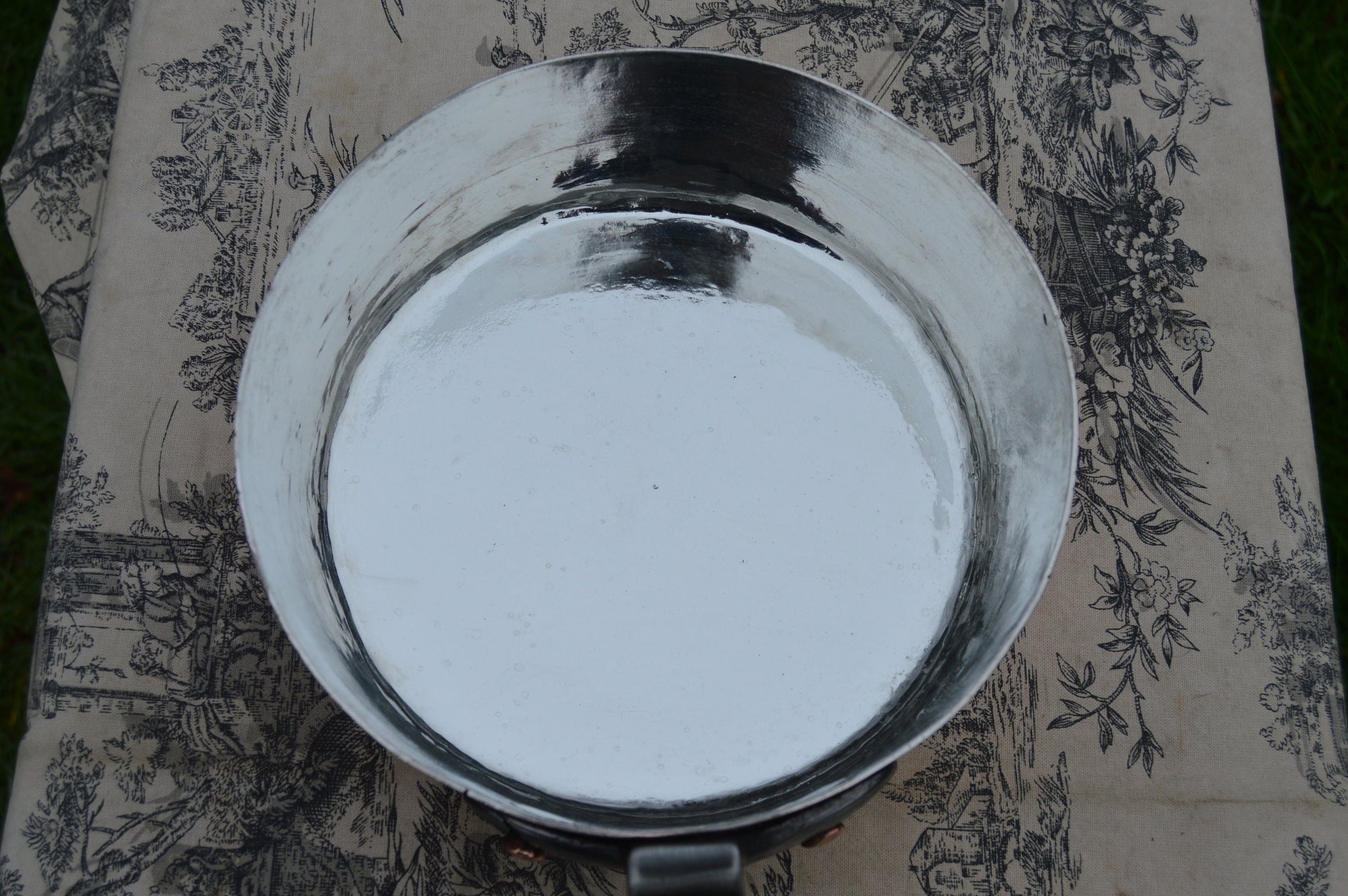 We refurbish all our pans and kitchen accessories. They are polished, they are cleaned thoroughly, the handles are checked, the interiors are checked for completeness - we renovate old tin and re-tin as necessary. You are getting a good vintage pan in a nearly new condition that can be used immediately - or an antique pan that is ready for another session in your kitchen.