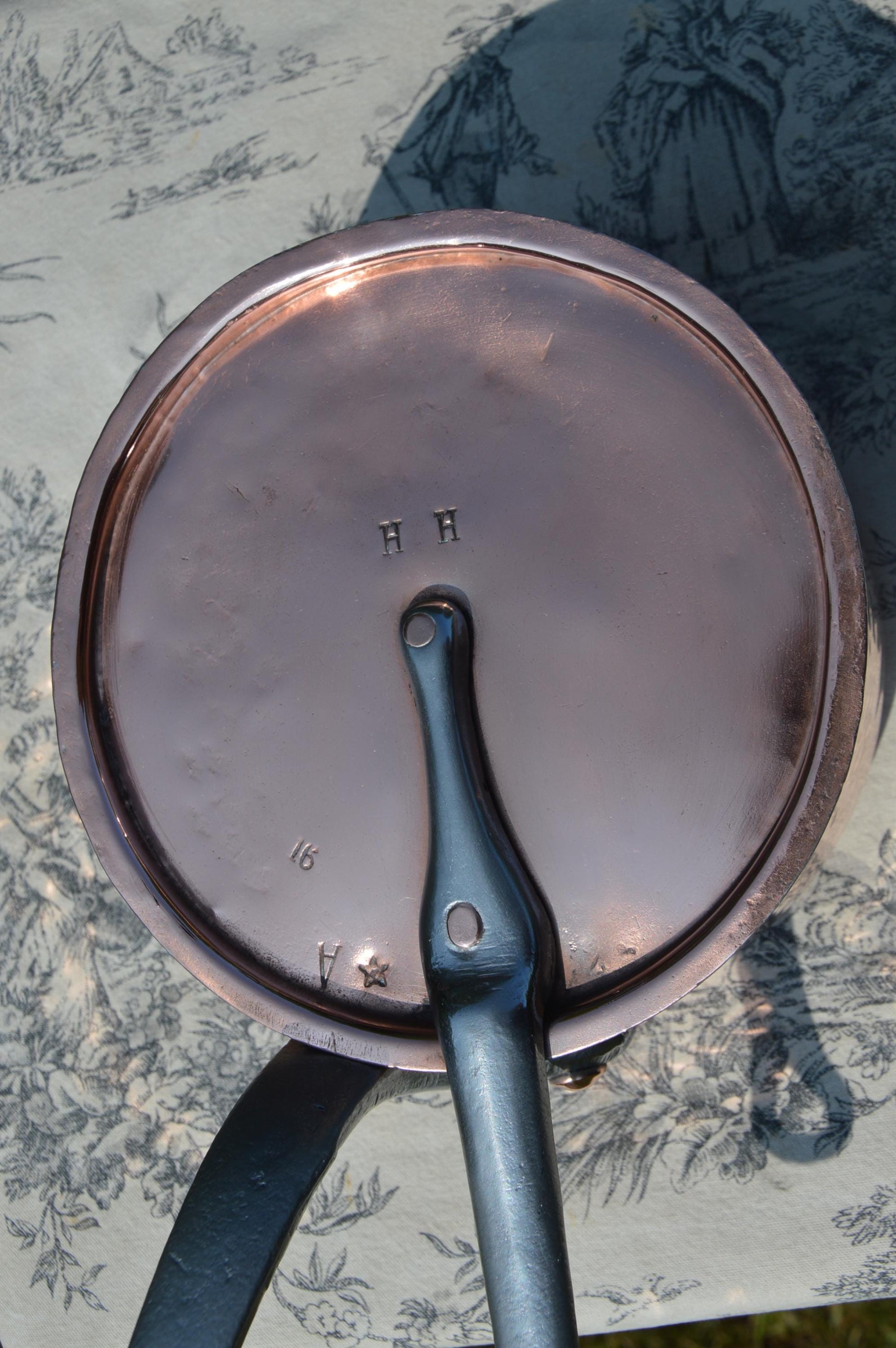 Vintage Chomette Favor Saucepan French Copper 16cm 6 1/4 inch 2.8mm New Tin Lined Professional Sauce Pan Butter Pan 1.8 k Cast Iron Handle with an antique lid marked HH and star. All newly tinned using the hand wiped method.