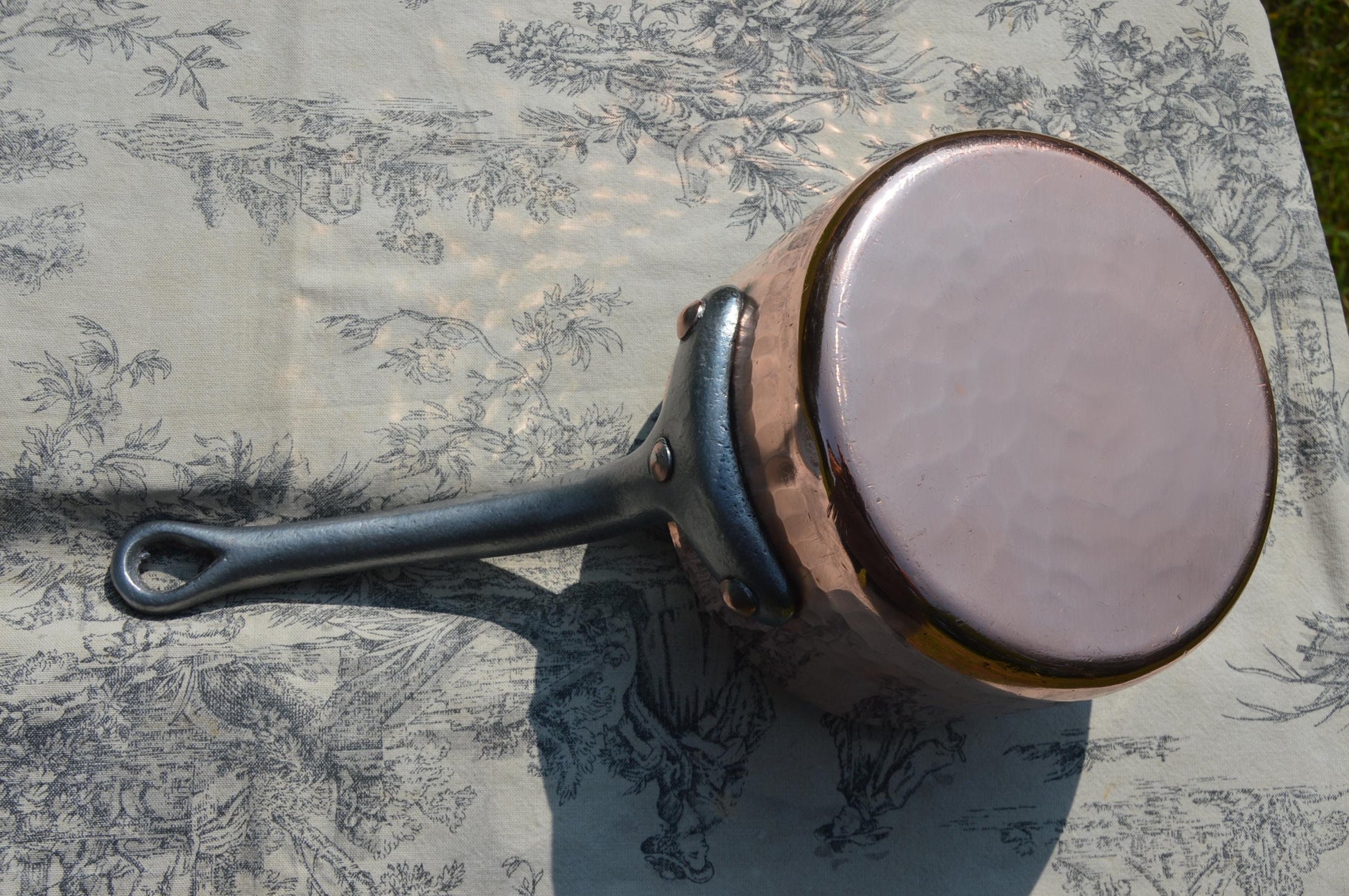Antique French Copper Saucepan: Chomette Favor, New Tin Lining, Cast Iron Handle