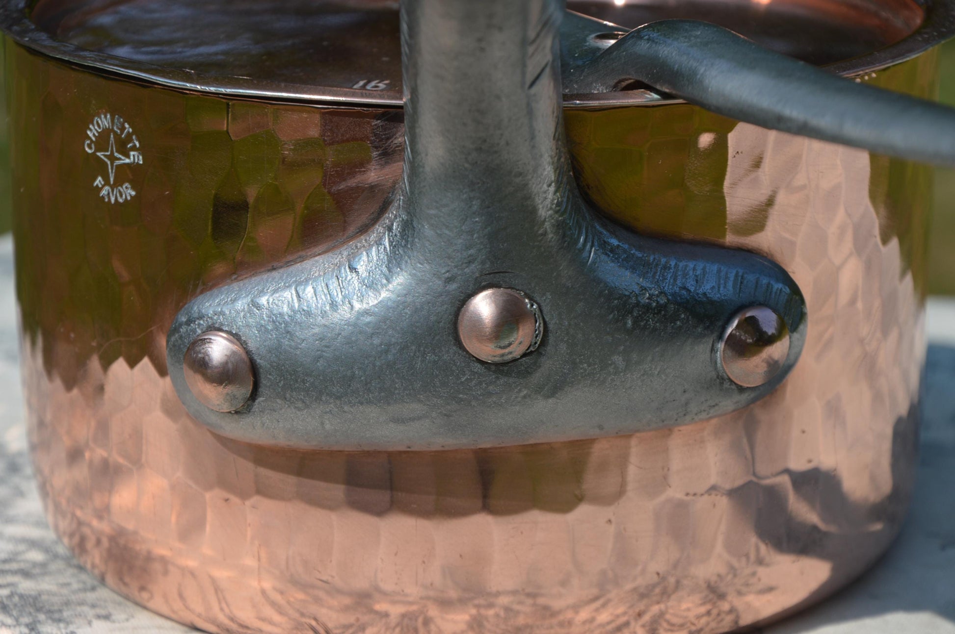 This Chomette Favor medium saucepan, solid heavy handle, good rivets, new tin lining hand wiped 100% pure tin. Your professional kitchen will thank you for it.