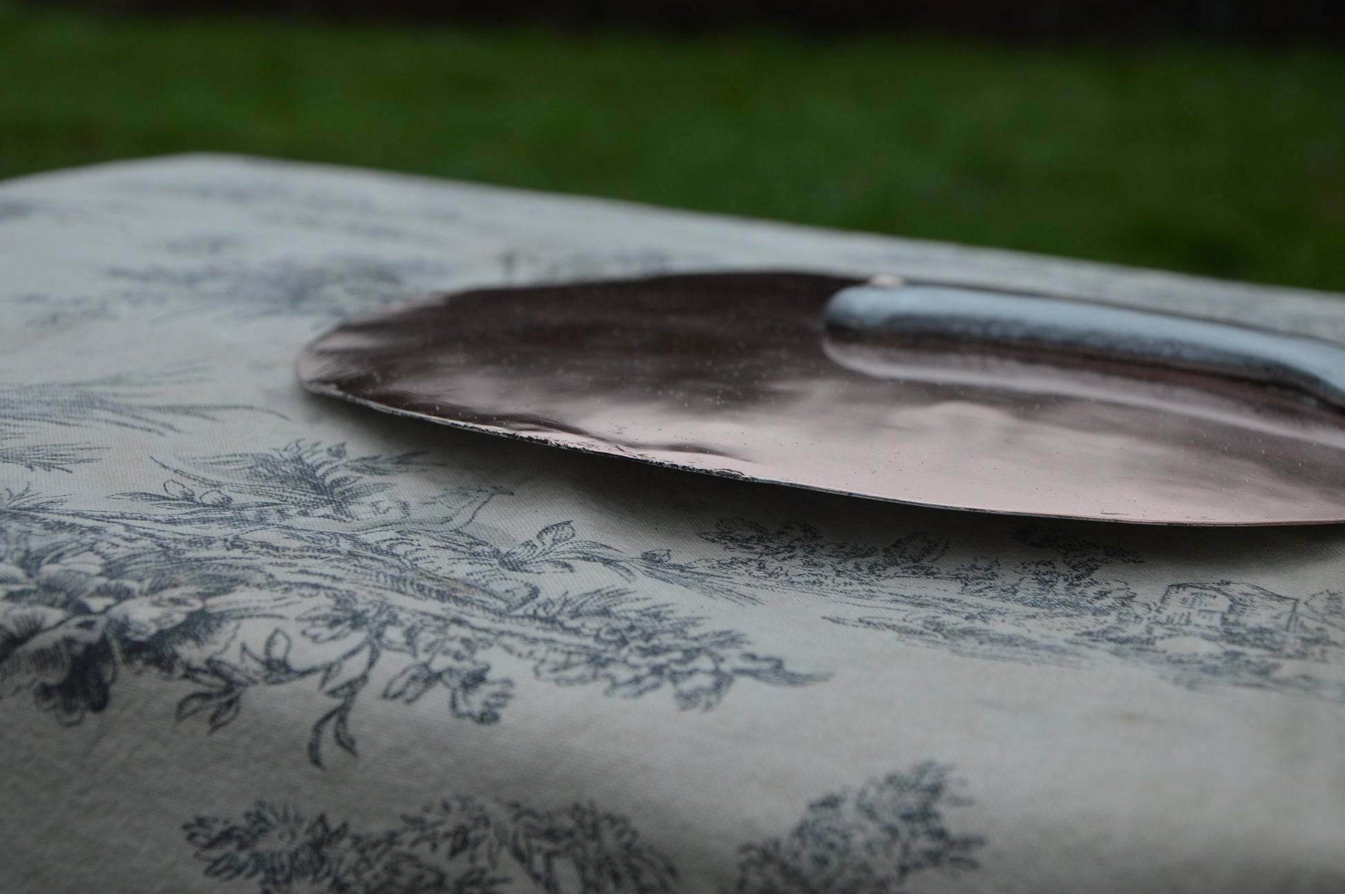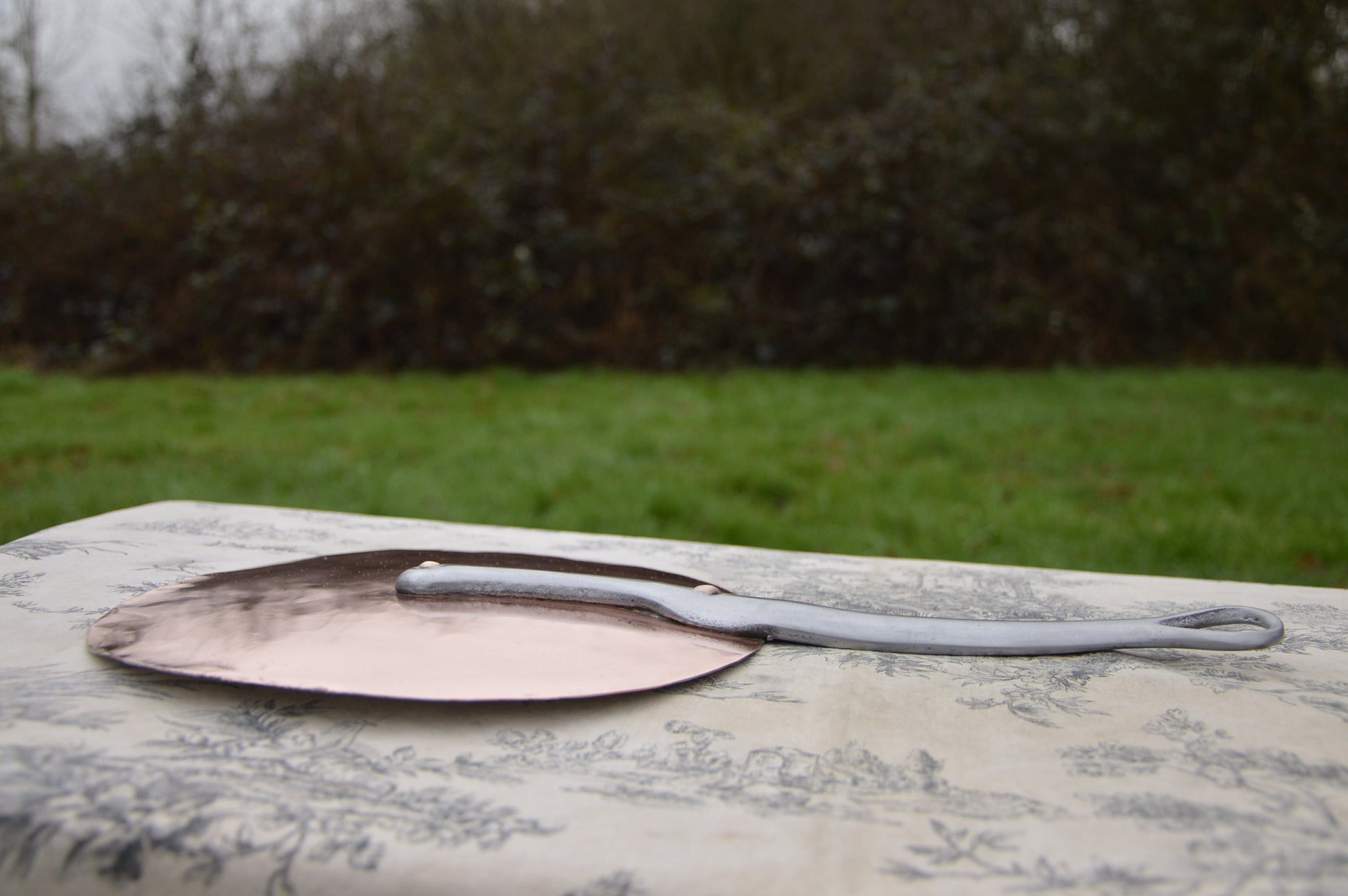 The handle is securely fixed with three copper rivets and the patina looks stunning when light hits it.