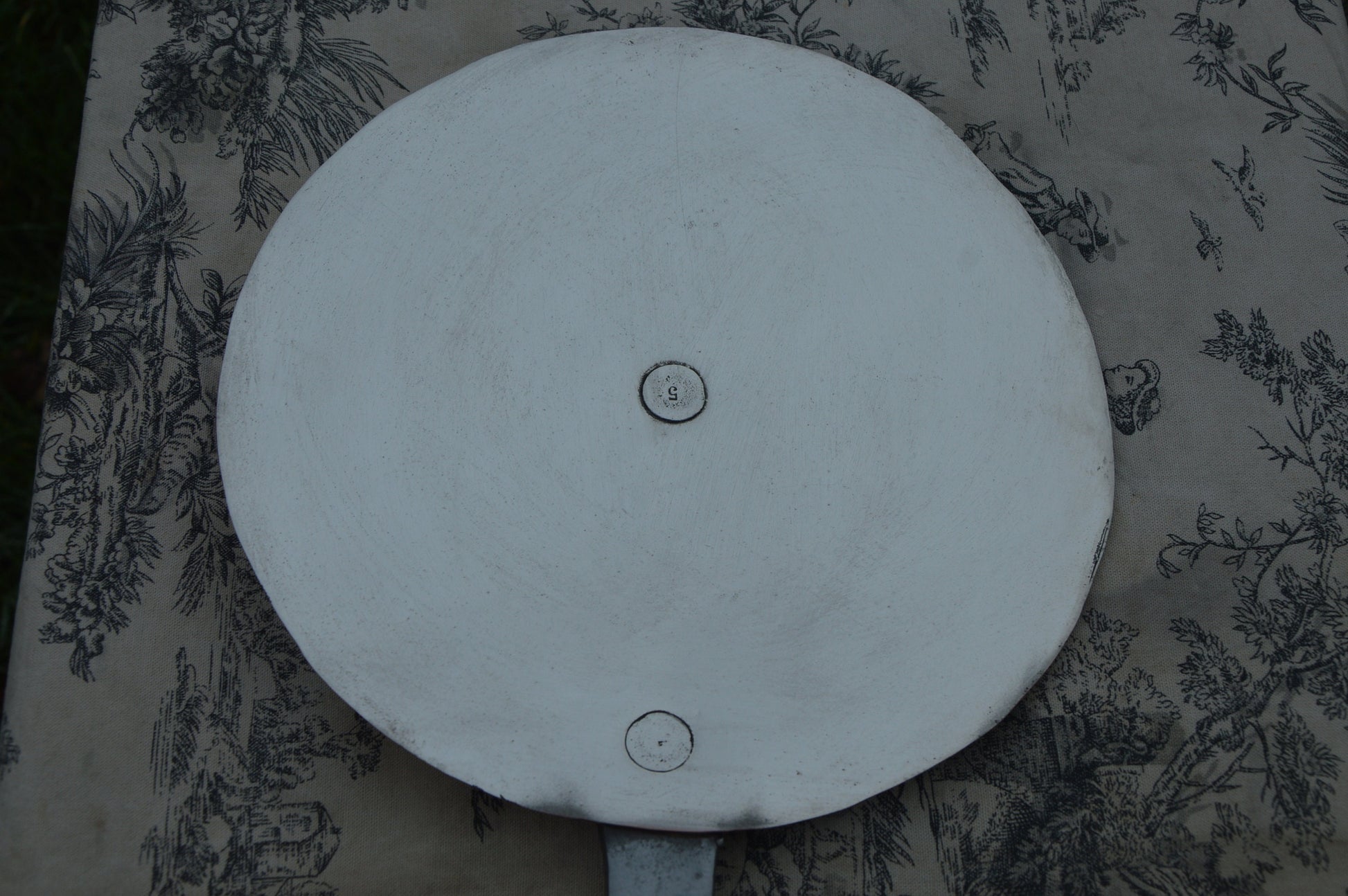 This is an vintage lid that was made in the mid 20th century and it is a good today as it was when it was made, with a wavy edge and dents.