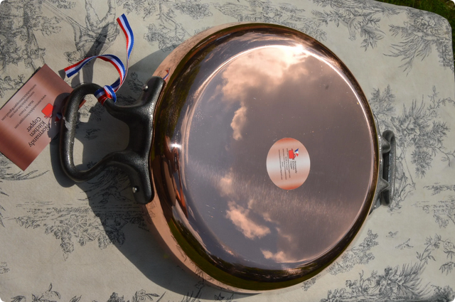 It weighs 1.8 kilos or 4 lb 3 ozs and is made from 1.8mm copper with a tin lining. This is a Normandy Kitchen Copper ready made heirloom. This is robust and totally fit for purpose.
