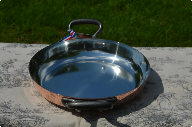 Be the first owner of your very own piece of Normandy Kitchen Copper - Made in France by artisans - steel rivets, trusty iron handles, pure tin lining, and pure copper body altogether in this quality Normandy Kitchen Copper 28cm Speciale Rond Saute Pan. Great for Paella, or any big dish!